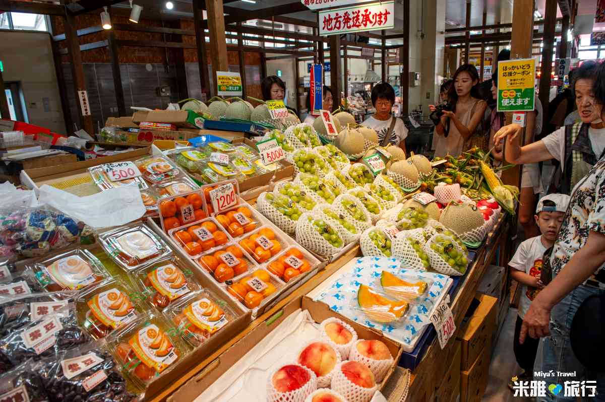 早餐記得不要吃太飽,因為朝市的海鮮實在太誘人了,小小街道上每家店家擺放每種海鮮,如果來到這樣不來上一碗海鮮丼飯實在不行,另外,在駅二市場裡還有很多伴手禮可以買,現烤的魷魚、早上採摘的農產品、香甜的哈密瓜、葡萄。
