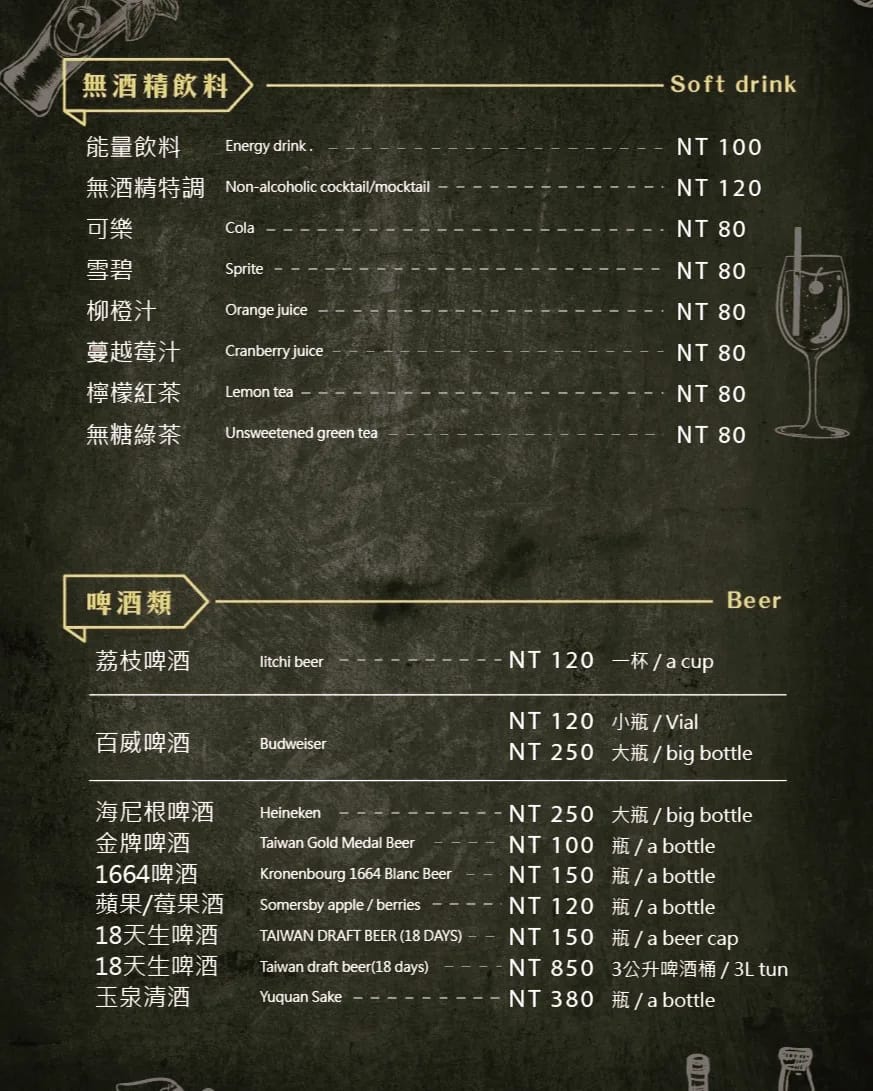 這裡的特調有無酒精和有酒精的,另外也有精釀啤酒等很多飲品可以點