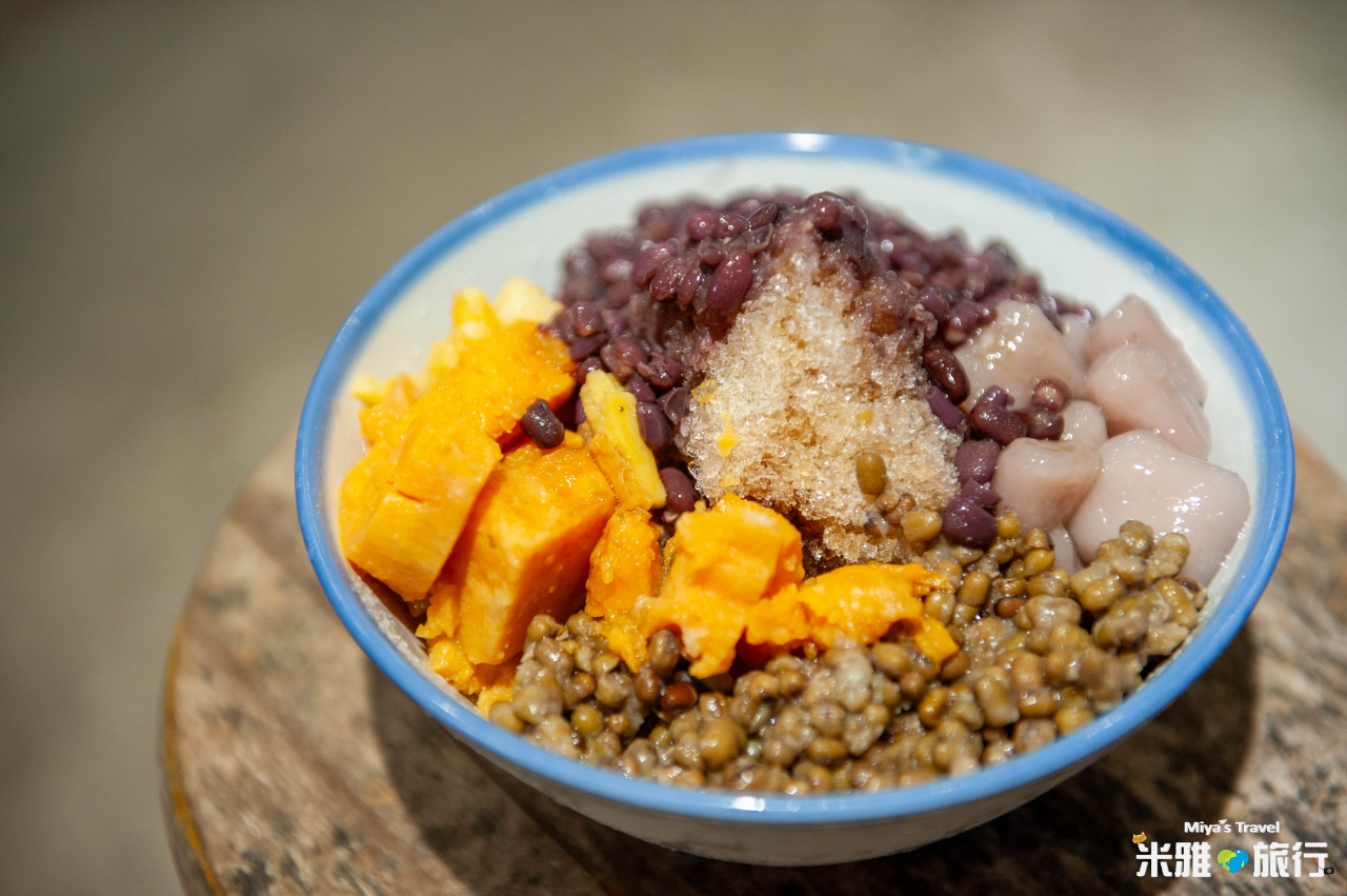 可以選擇四種口味,我個人最愛芋圓QQ彈彈好好吃,地瓜、紅豆、綠豆也不錯喲~加上他家自制的黑糖糖水不會過甜,搭配起來好好吃喲^^而且這個份量有點大,一個人吃完超飽的。