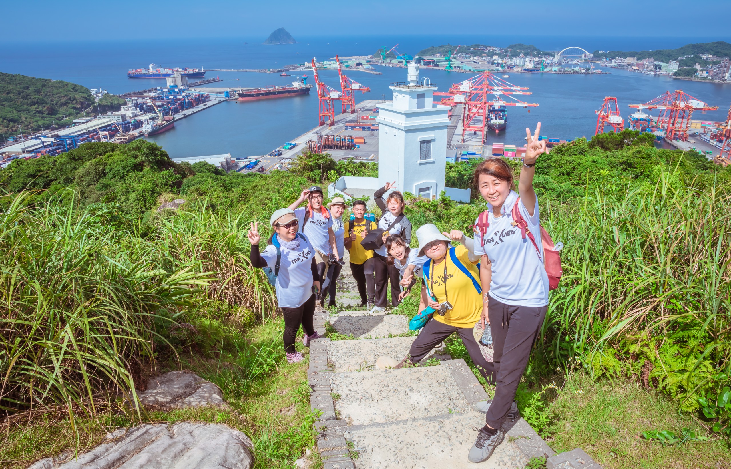 大約步行10分鐘來到基隆燈塔景觀台,超愛這個景觀台的,可以一眼望盡基隆沿岸的開闊景色,而且遊客,想要怎麼拍都沒問題,加上超給力的大藍天,怎麼拍都美極了