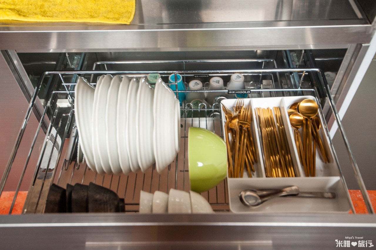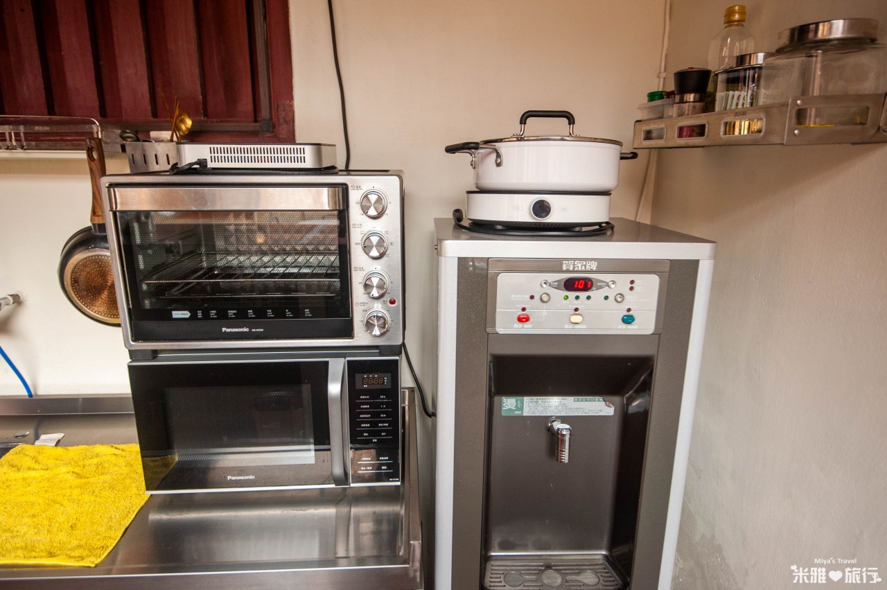中廳旁就有開放式廚房,不旦可以自已下廚,還備有各式鍋碗、微波爐、 烤箱、飲水機