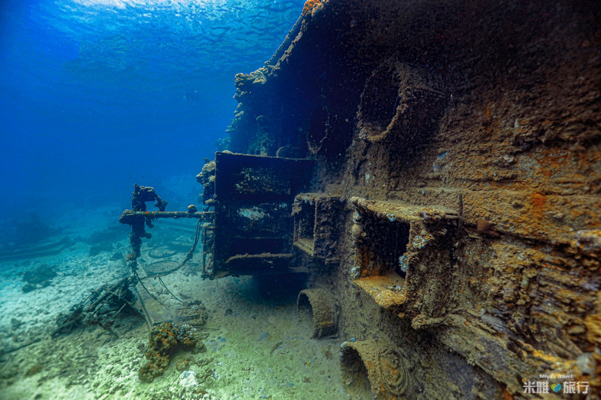 抵達時完全不知道下面有什麼,只見到很多船停靠大家都下水浮潛,下水後就可以清楚看到沉船在下面,這裡的水很清澈,非常容易就可以看到整艘船的狀況