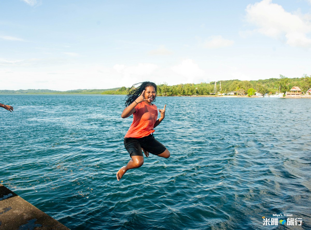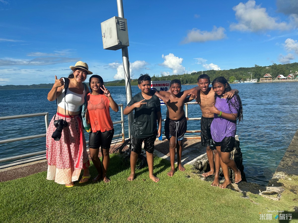 旅程的最後一天進走市區,第一次走進市區才發現跟我想象不同,整個街道很整潔而且公園都很美,如果想認識帛琉的歷史,一定要去博物館走走,再來就是到KB橋、長堤國家公園,聽完地陪說完故事,剛好有一小段時間可以去搭訕當地人,剛好遇到假日超多當地人來玩水,還有小朋友在跳水,沒想到他們超可愛還特別做POSE給我拍攝。