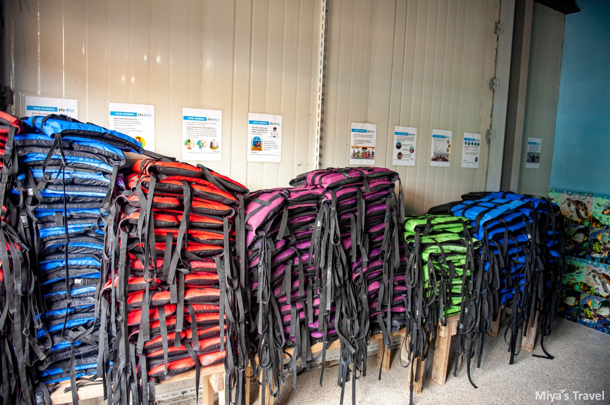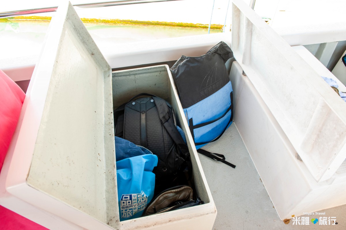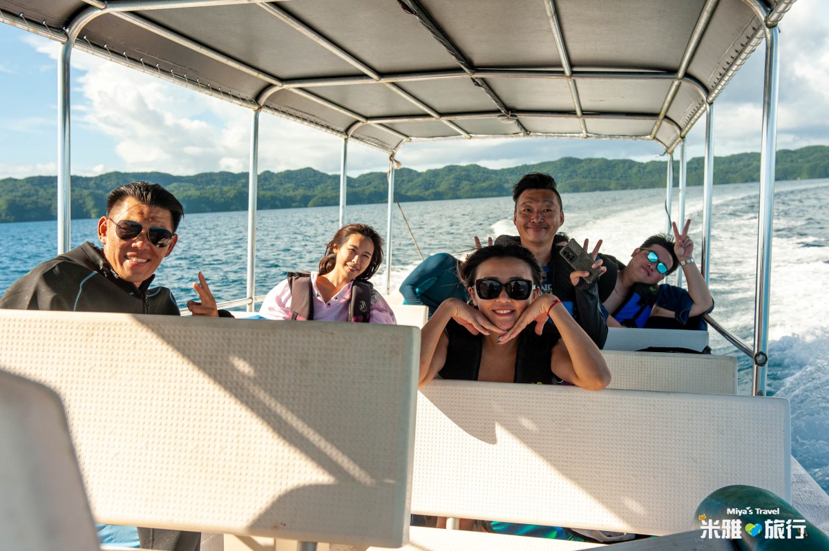 來到帛琉最重要就是坐船出海,這次我們人數不多品冠還是幫我們安排舒適的大船,可以一人一排的坐位, 並且在座位下方都可以放置個人物品以避免用溼和飛到船上,另外,品冠有幫每個人準備防水袋就不用擔心貴重物品溼掉,玩水過程的救生衣、浮潛面鏡都備好,面鏡咬嘴還準備每個一個新的。